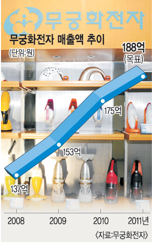 경기도 수원의 삼성디지털시티 인근에 위치한 무궁화전자에는 모든 문에 문턱이 없다. 출입문은 다른 곳에 비해 배 이상 크고 화장실도 3배 정도 크기다. 공장 모든 작업대에는 오르내릴 수 있는 발판이 설치돼 있다. 엘리베이터도 다른 곳보다 넓고 병원처럼 아주 느리게 움직인다. 모두 이 회사에 근무하는 120명의 장애인 사원을 위한 배려에서다. 무궁화전자는 장애인 사원이 주인이나 마찬가지다. 회사 주차장도 장애인 사원만 사용할 수 있다. 김기경 이사는 “장애인이 할 수 있는 일은 100% 장애인을 고용한다는 게 원칙”이라며 “비장애인은 물류나 대외 업무 등의 분야만 뽑고 있다”고 말했다. 장애인 직원이 70%가 넘는 기업에서 제품 개발·생산·판매까지 하는 기업은 무궁화전자가 유일하다. 현재 주력 제품은 핸디청소기다. 연간 45만대를 생산해서 35만대는 삼성전자에 납품해 삼성 브랜드로 팔리고 나머지 10만대는 무궁화 이름을 달고 판매한다. |